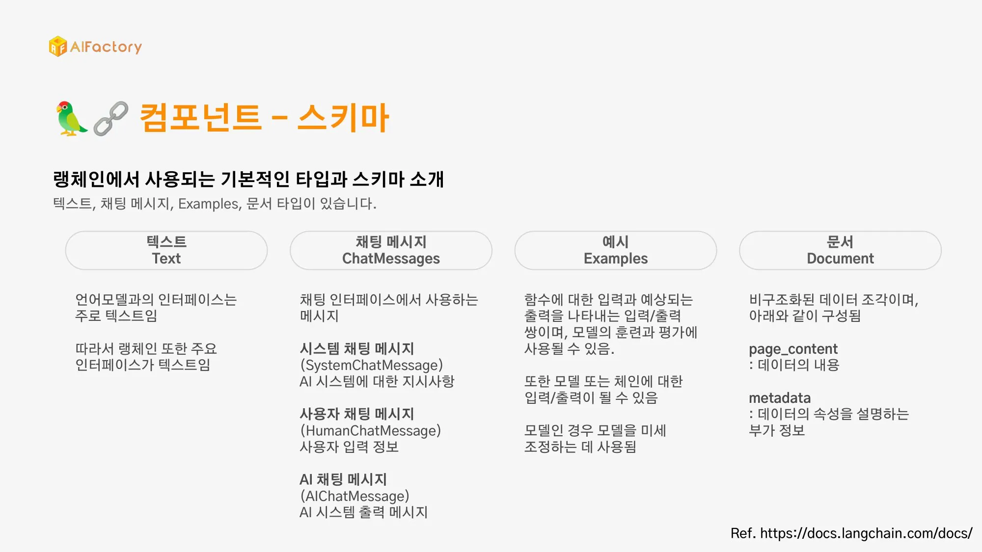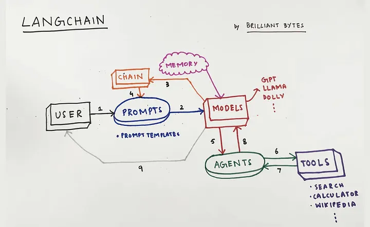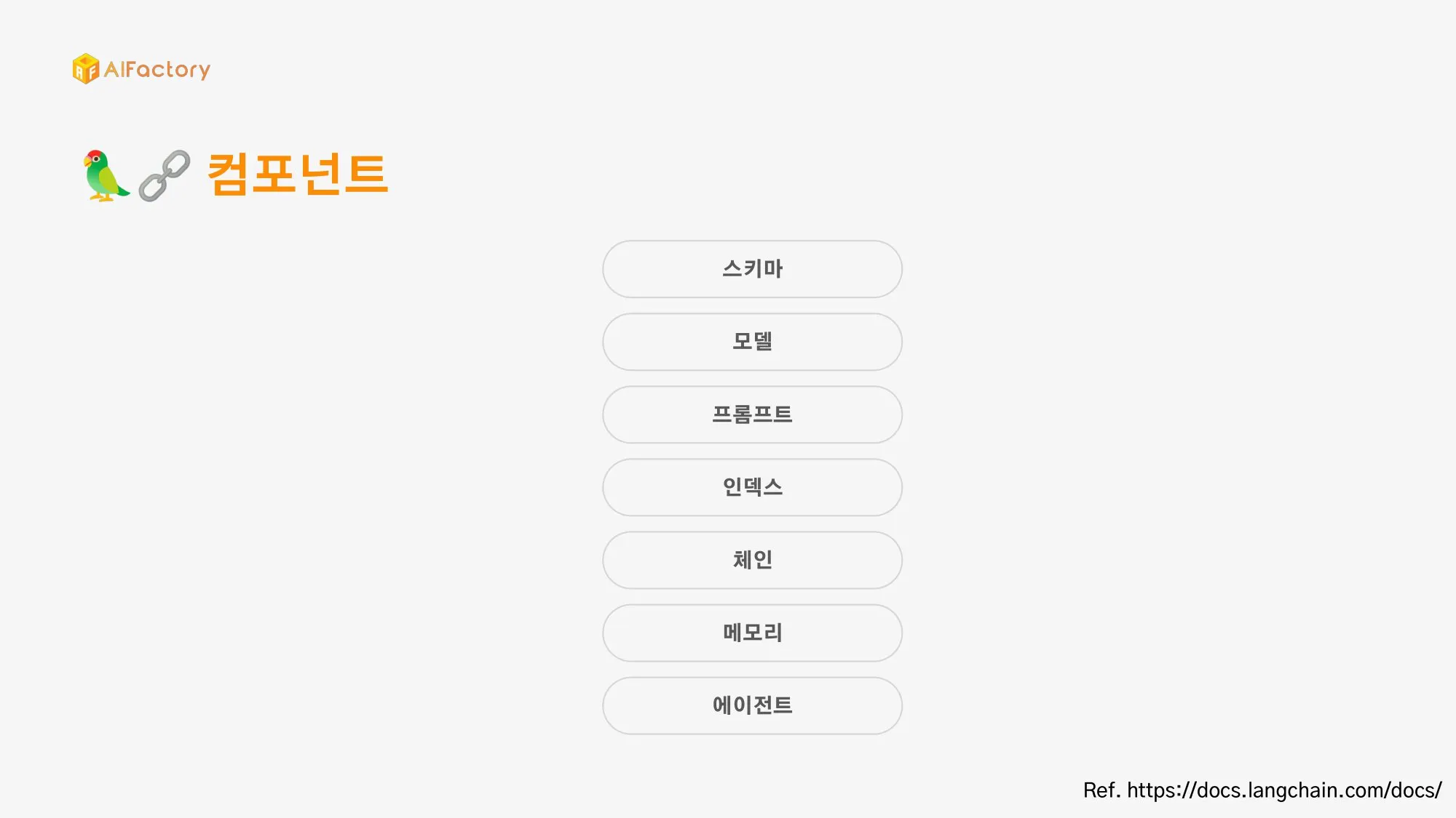 스키마, 모델, 프롬프트, 인덱스, 메모리, 체인, 에이전트