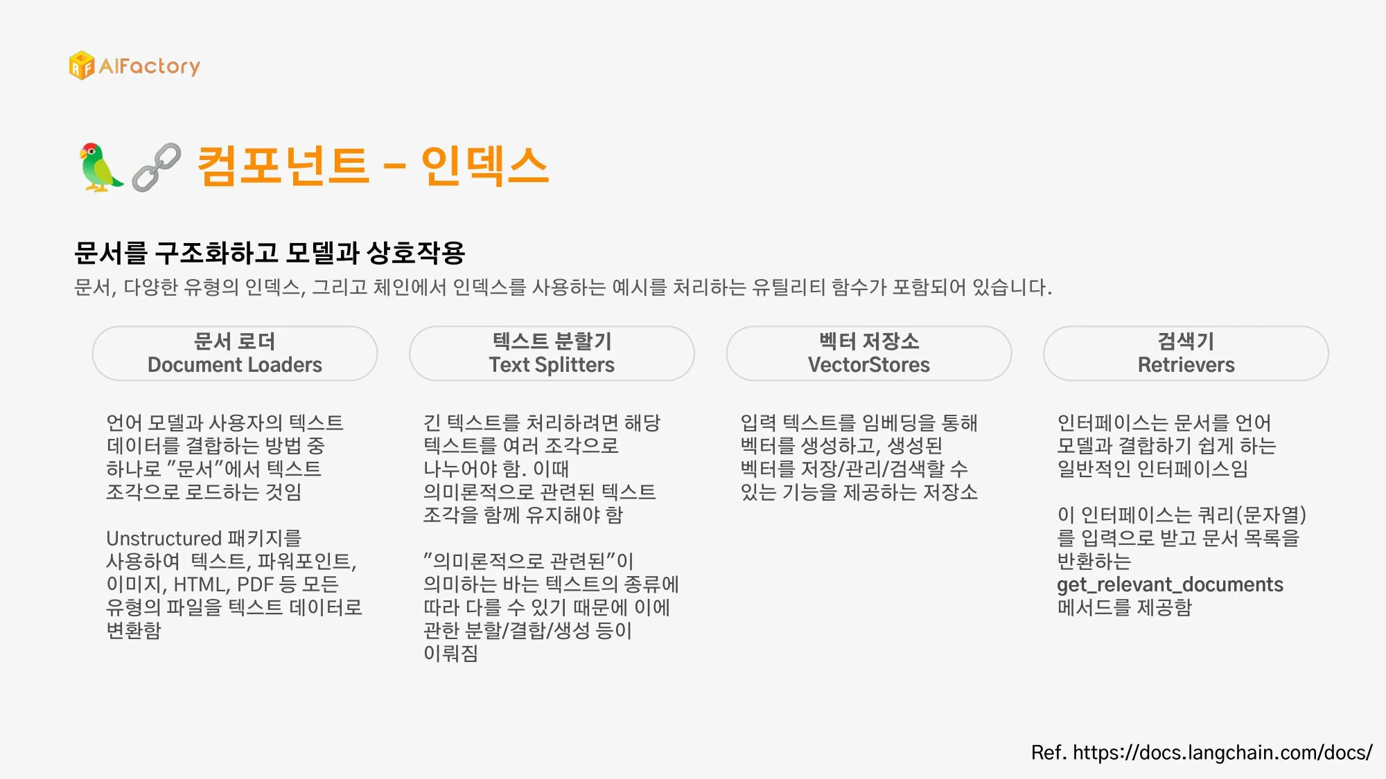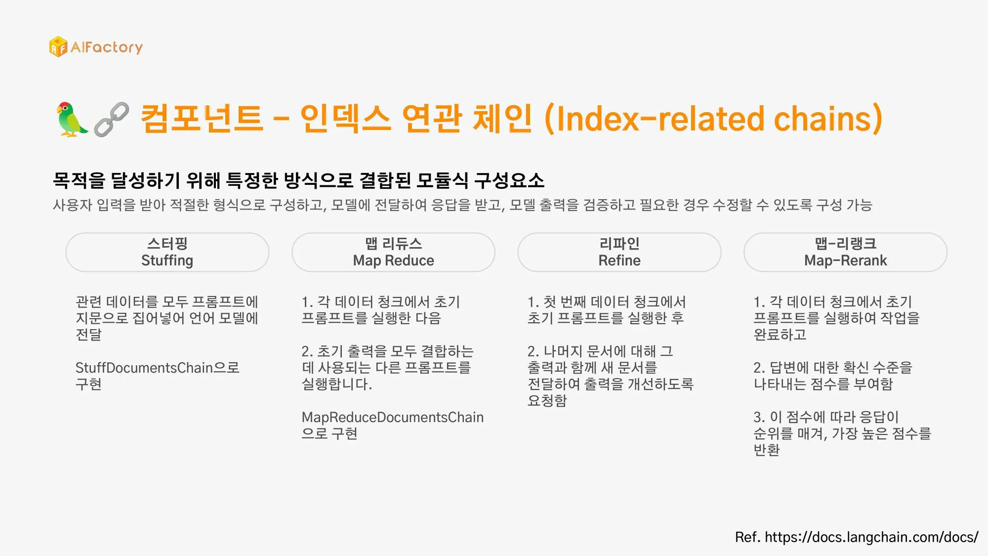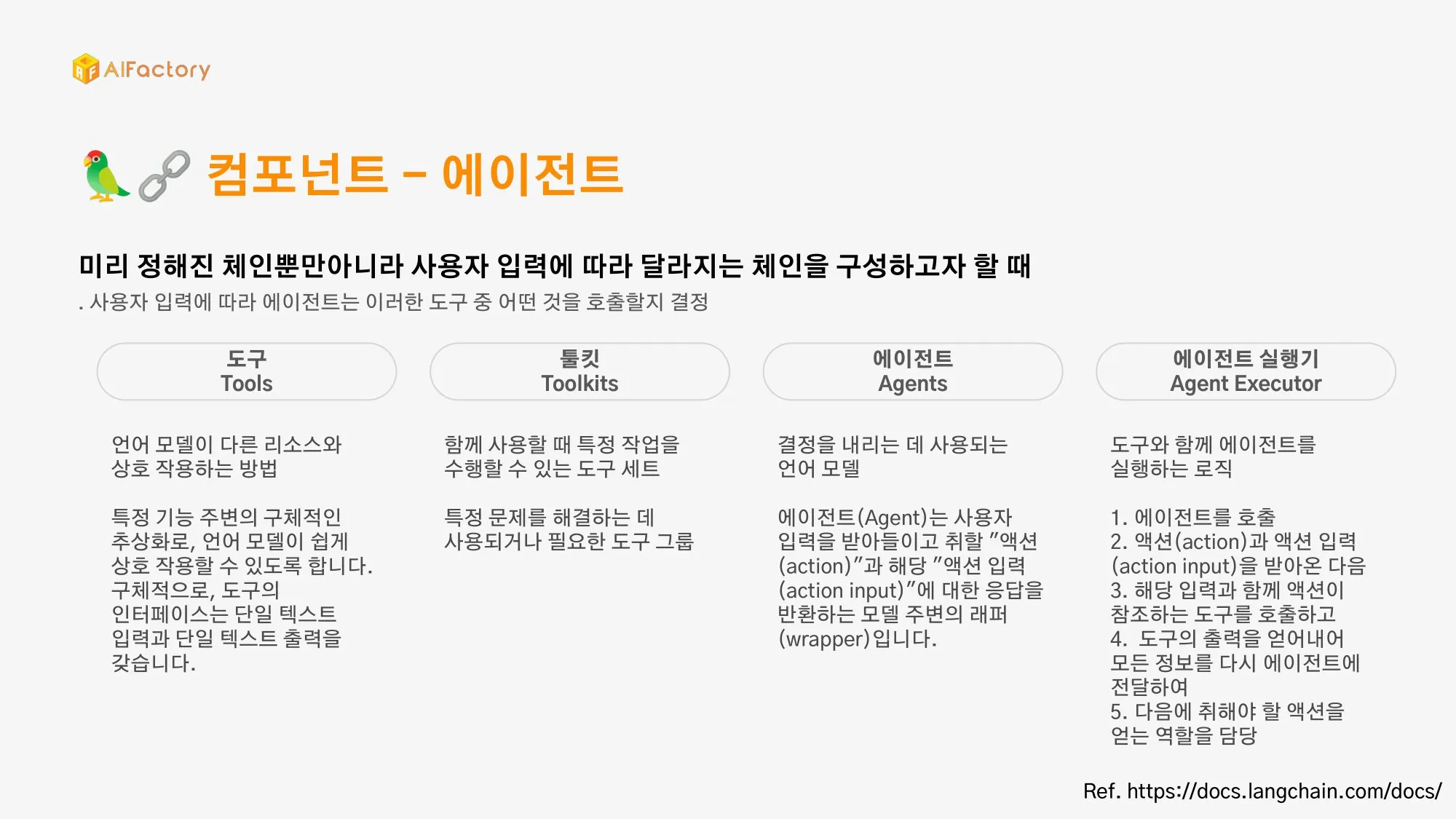 스키마, 모델, 프롬프트, 인덱스, 메모리, 체인, 에이전트