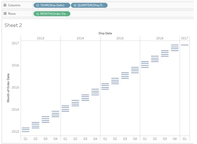 The visualization shows ship date and order date. Are the dates discrete or continuous?