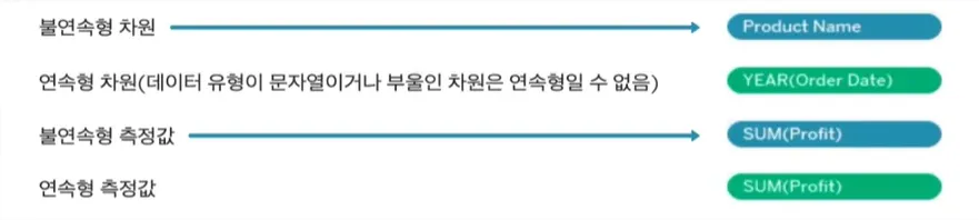 일반적으로 연속형 필드는 뷰에 축을 추가