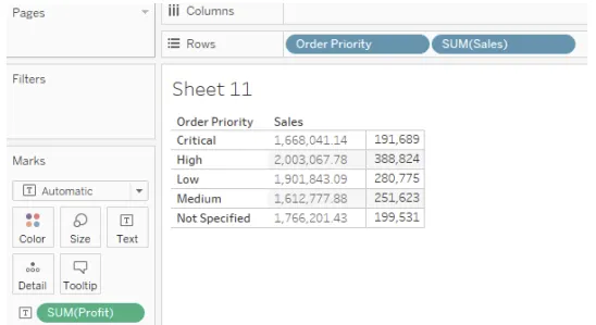 → Order Priority is a discrete dimension, and Sum(Sales) is a discrete measure.