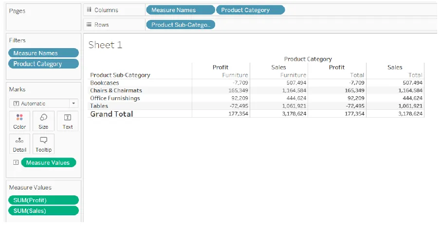 → Choose any two measures and drag them to columns and rows -> select any dimension and drag it to the color of Marks card -> select any dimension/measure and drag it to the shape of the Marks card