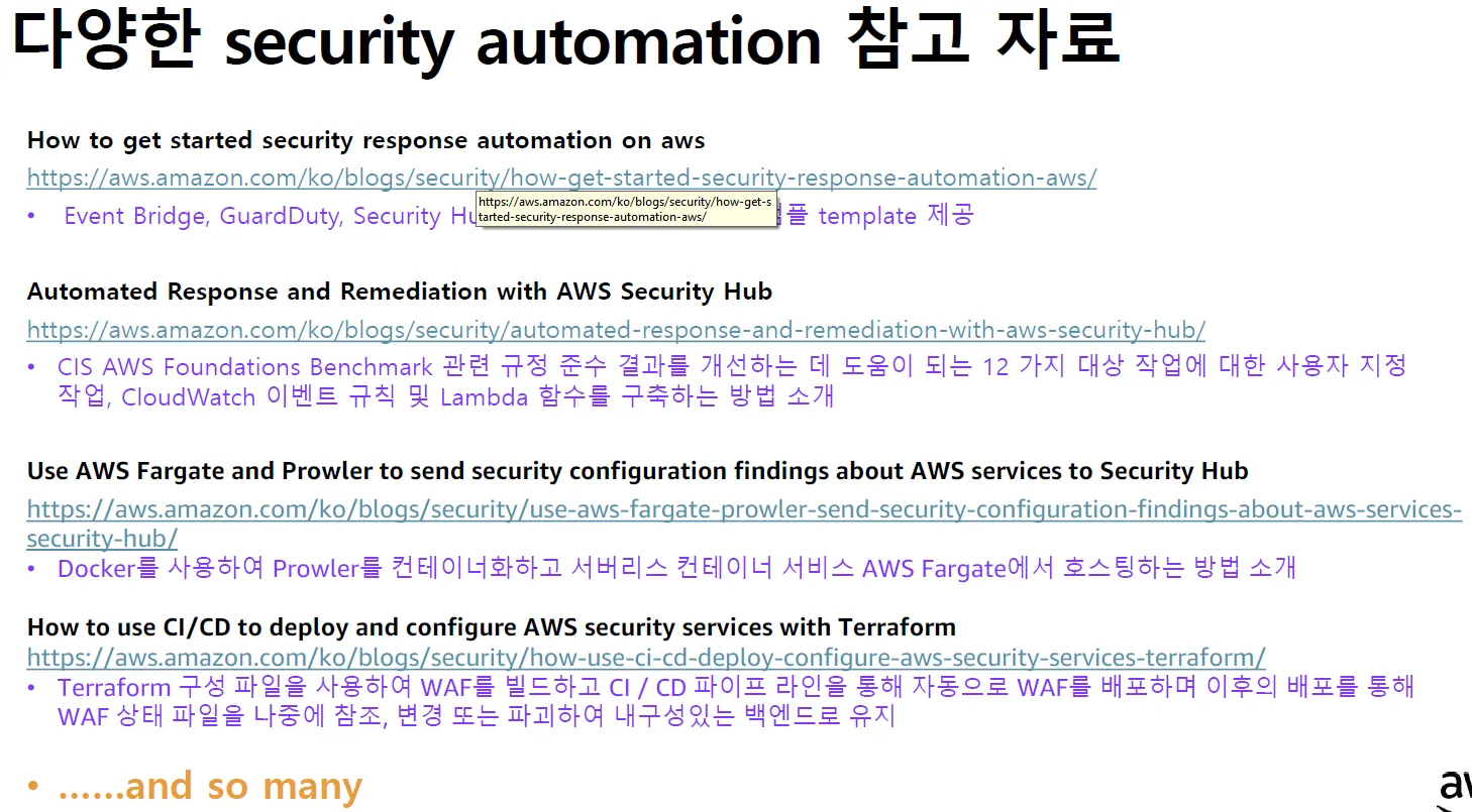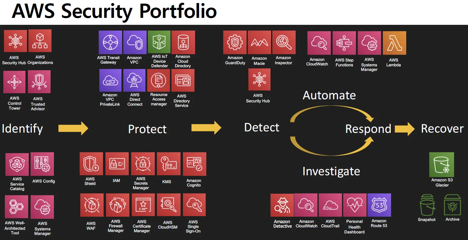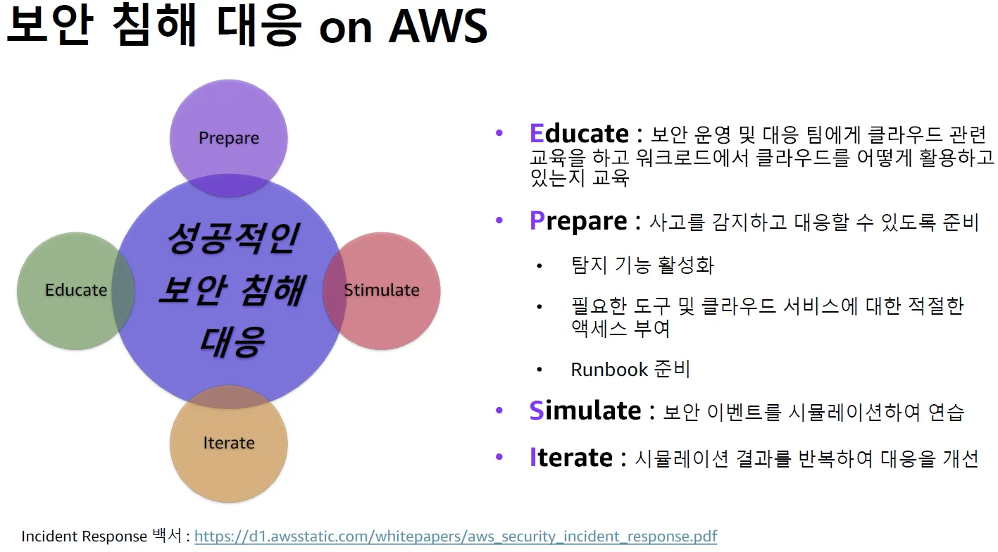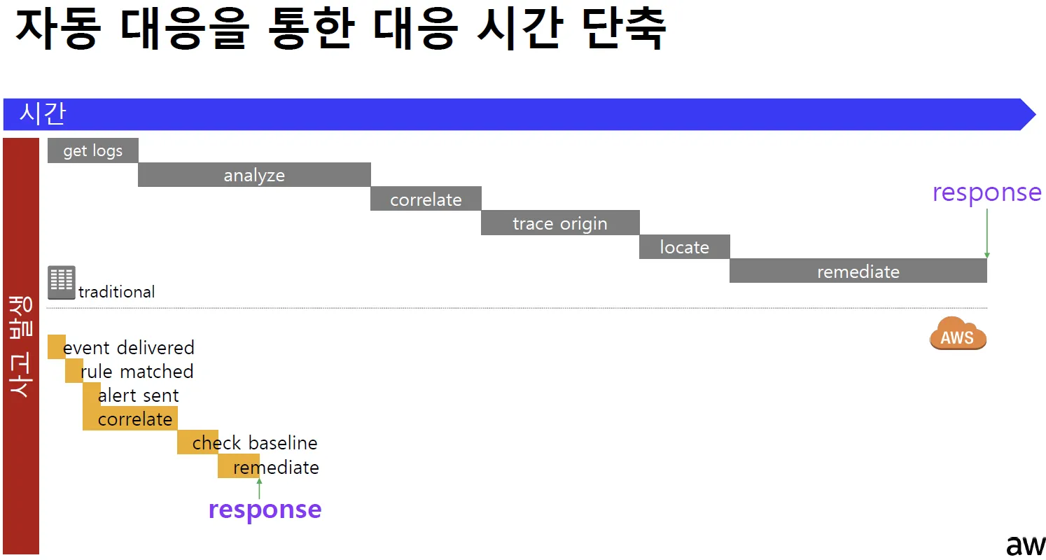 리소스 식별 관리(Identify) → 방어(Protect) → 침해 탐지(Detect) → 자동화(Automate), 조사(Investigate), 대응(Repond) → 복구