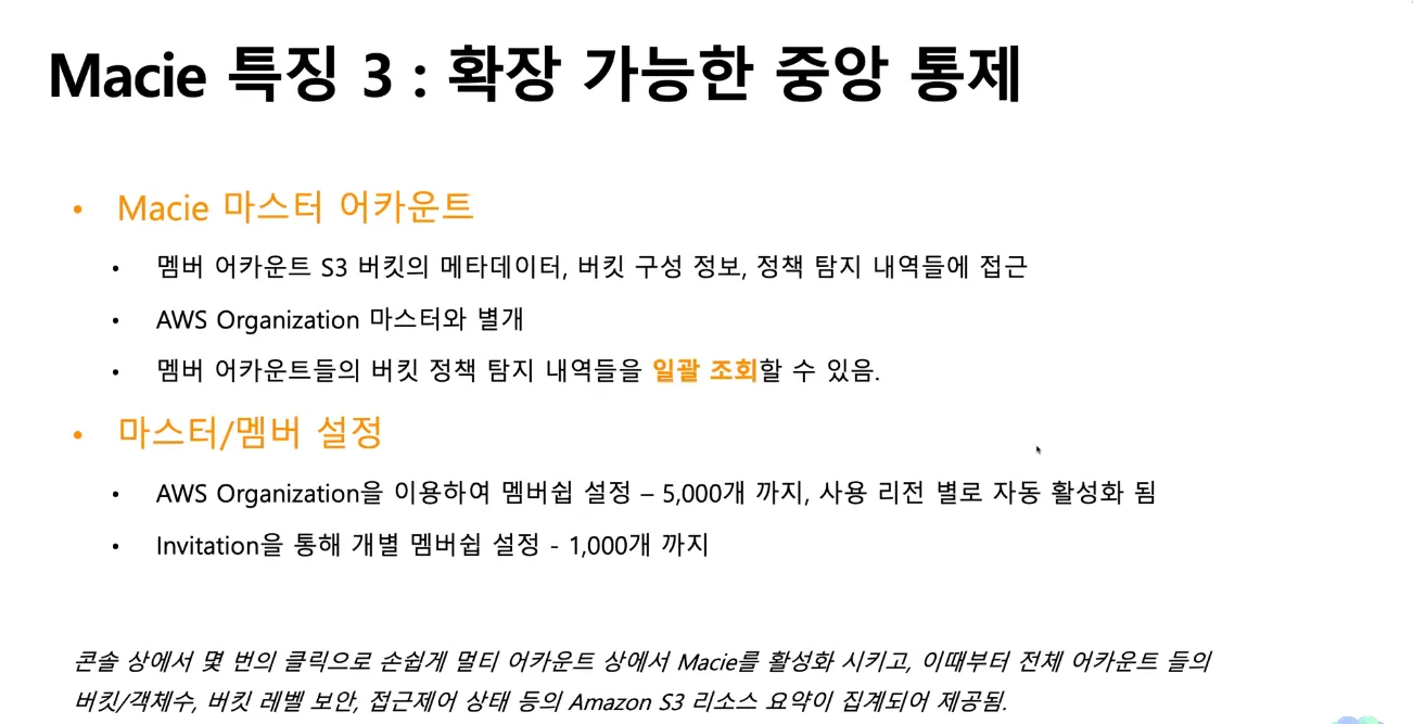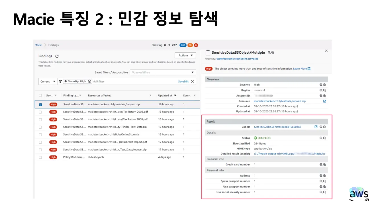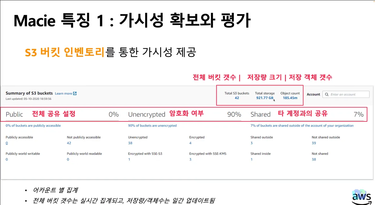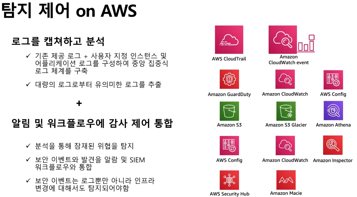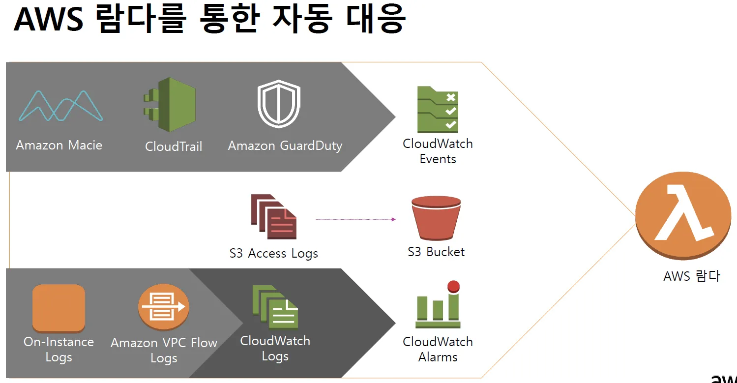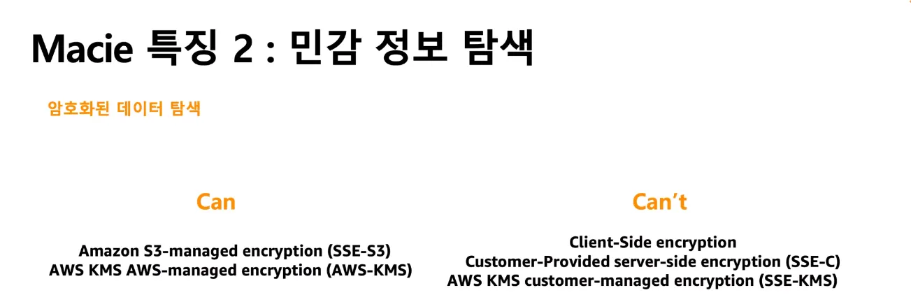 미승인 접근, 리소스에 대한 상시 접근 통로 구성 시도, AWS 자격증명 유출로 인한 불법 접근 → Amazon Macie