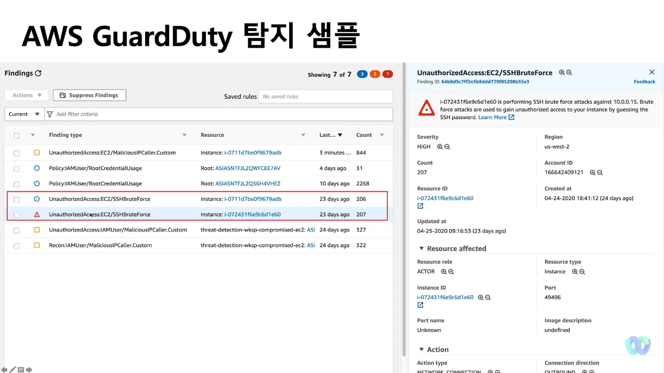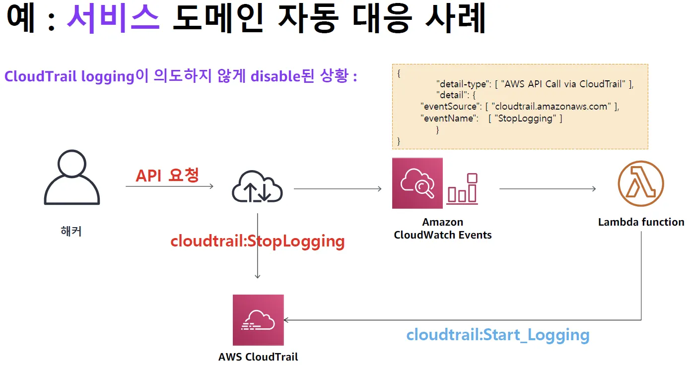계정 침해 후 Cloud Trail 로깅을 중지하는 경우에 대한 예...