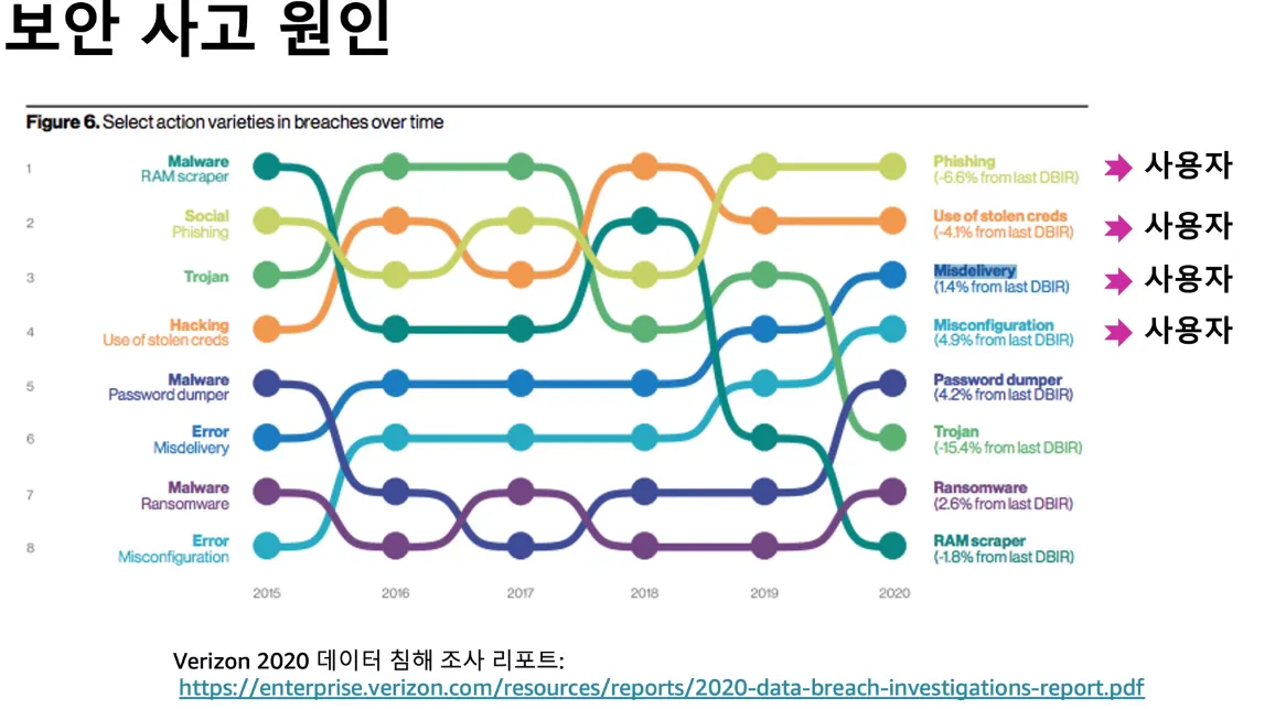 사용자를 기반으로 하는 보안사고의 비중이 증가하고 잇따.