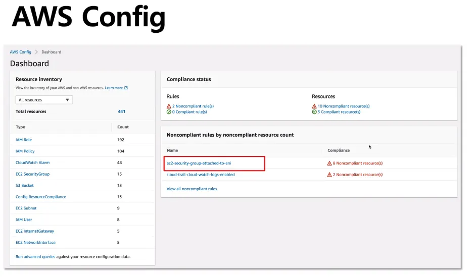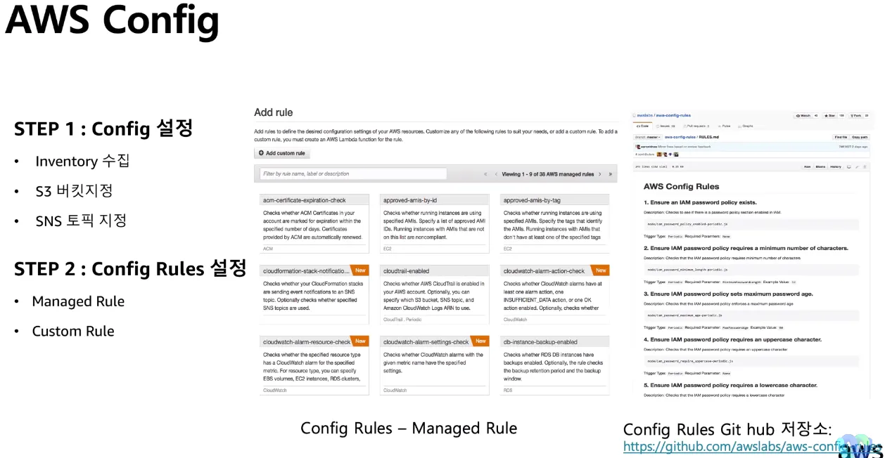 규정 위반 리소스, 고객 서비스 접근 차단, 미허가 리소스 생성 → AWS Config(Rule)