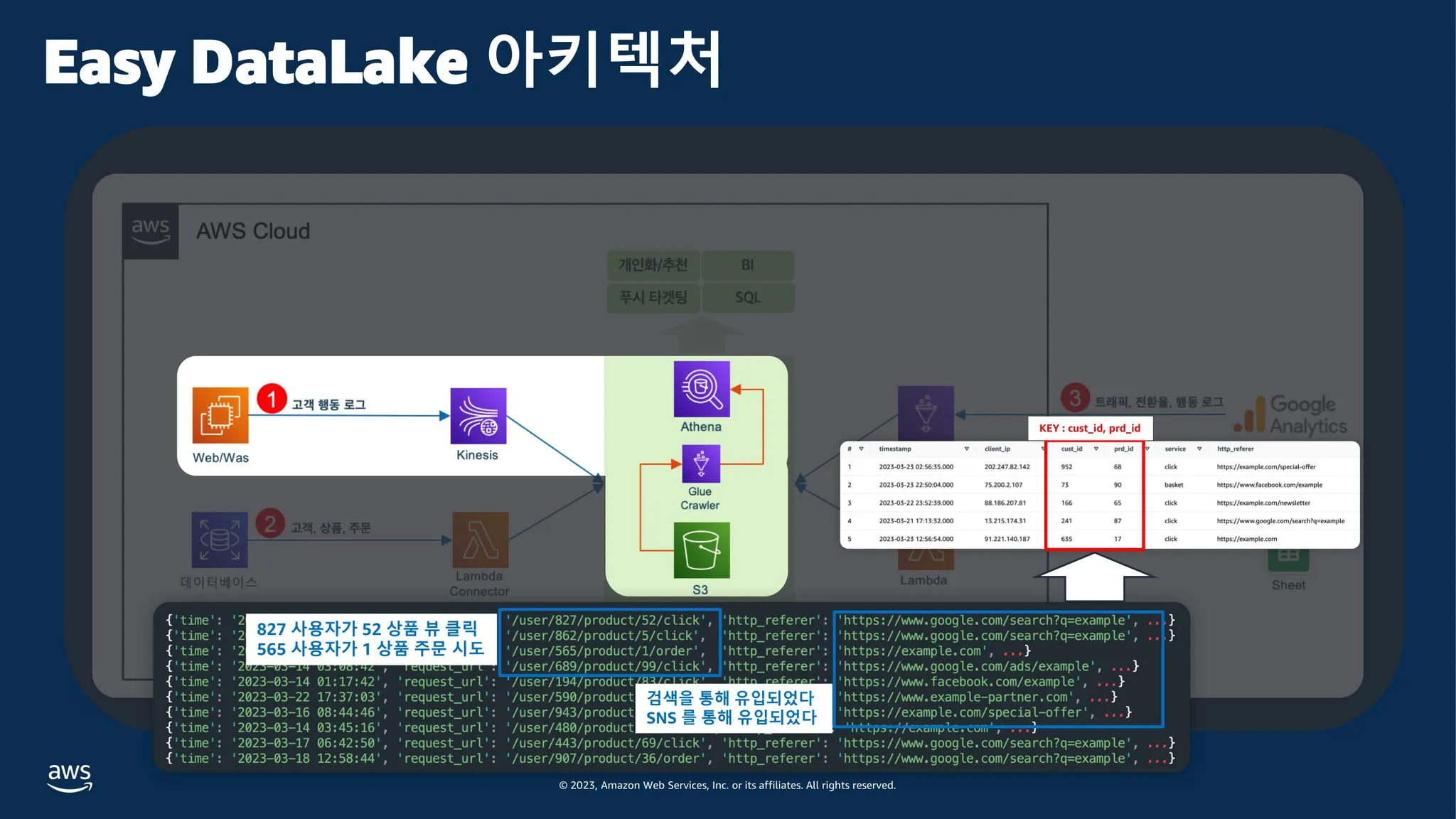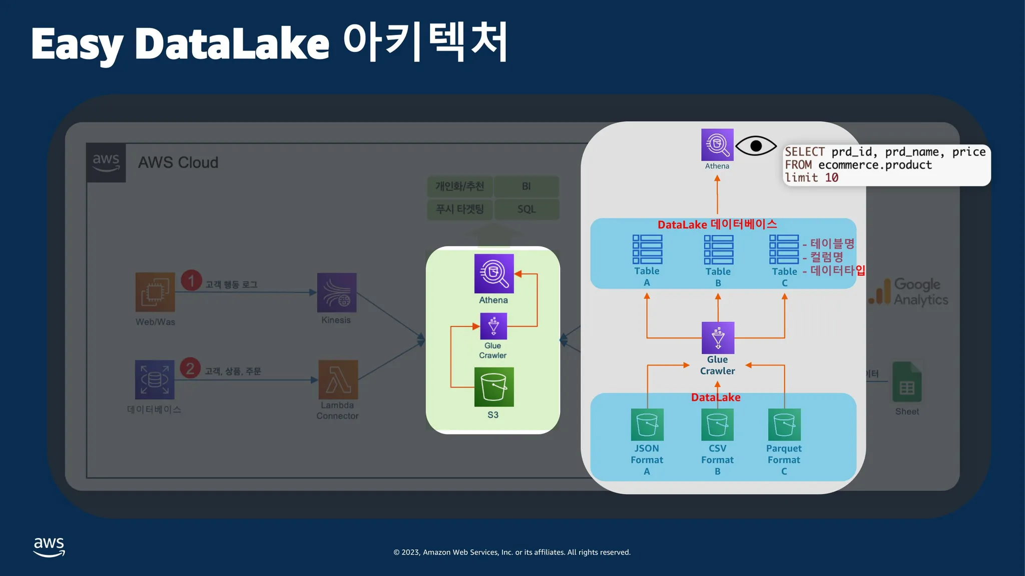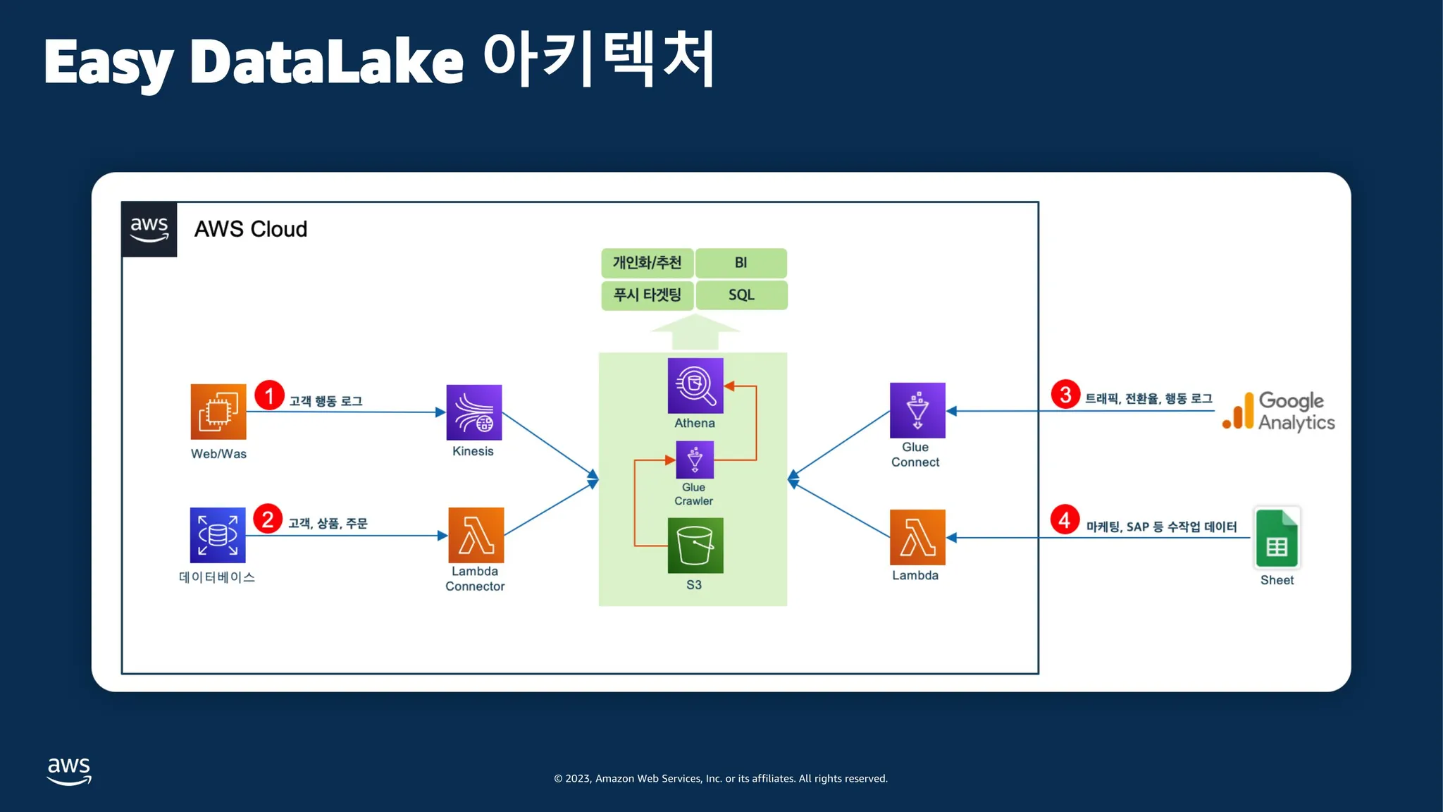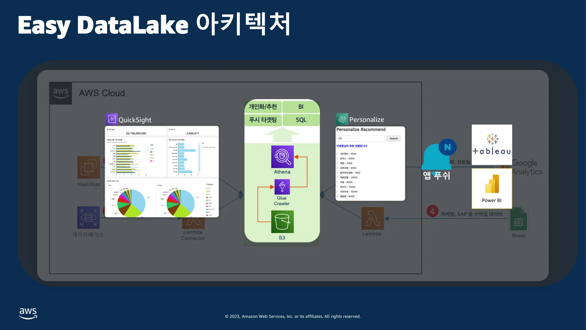 Athena, QuickSight, Personalization에서 Data Source로 사용 가능.