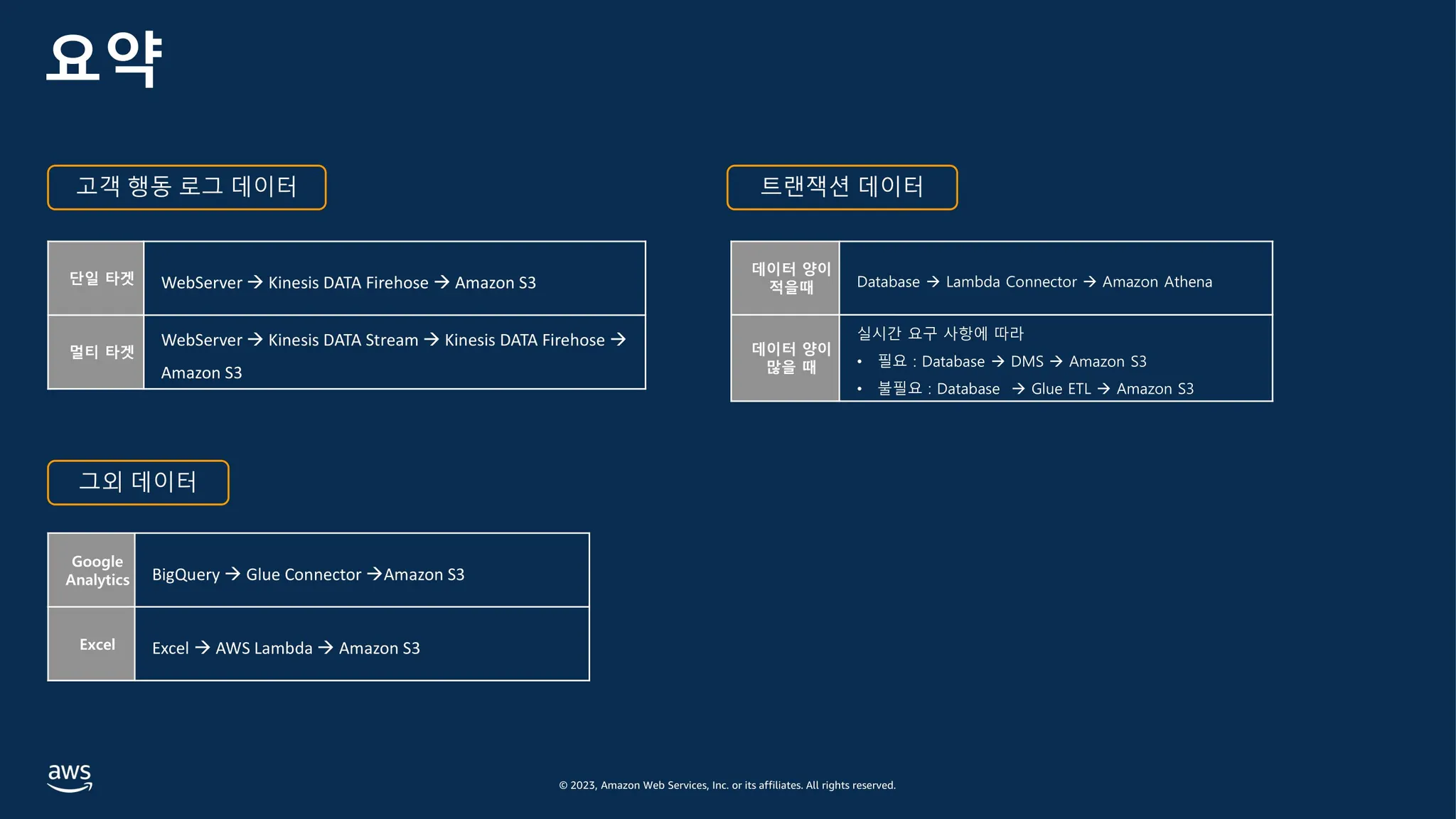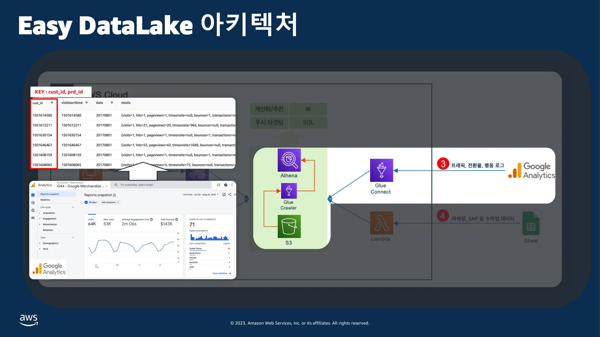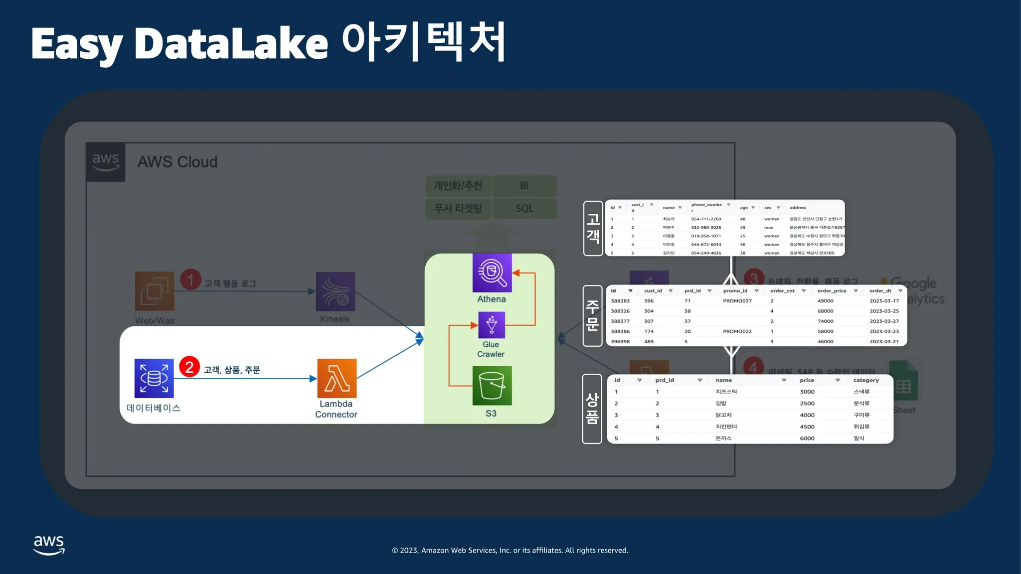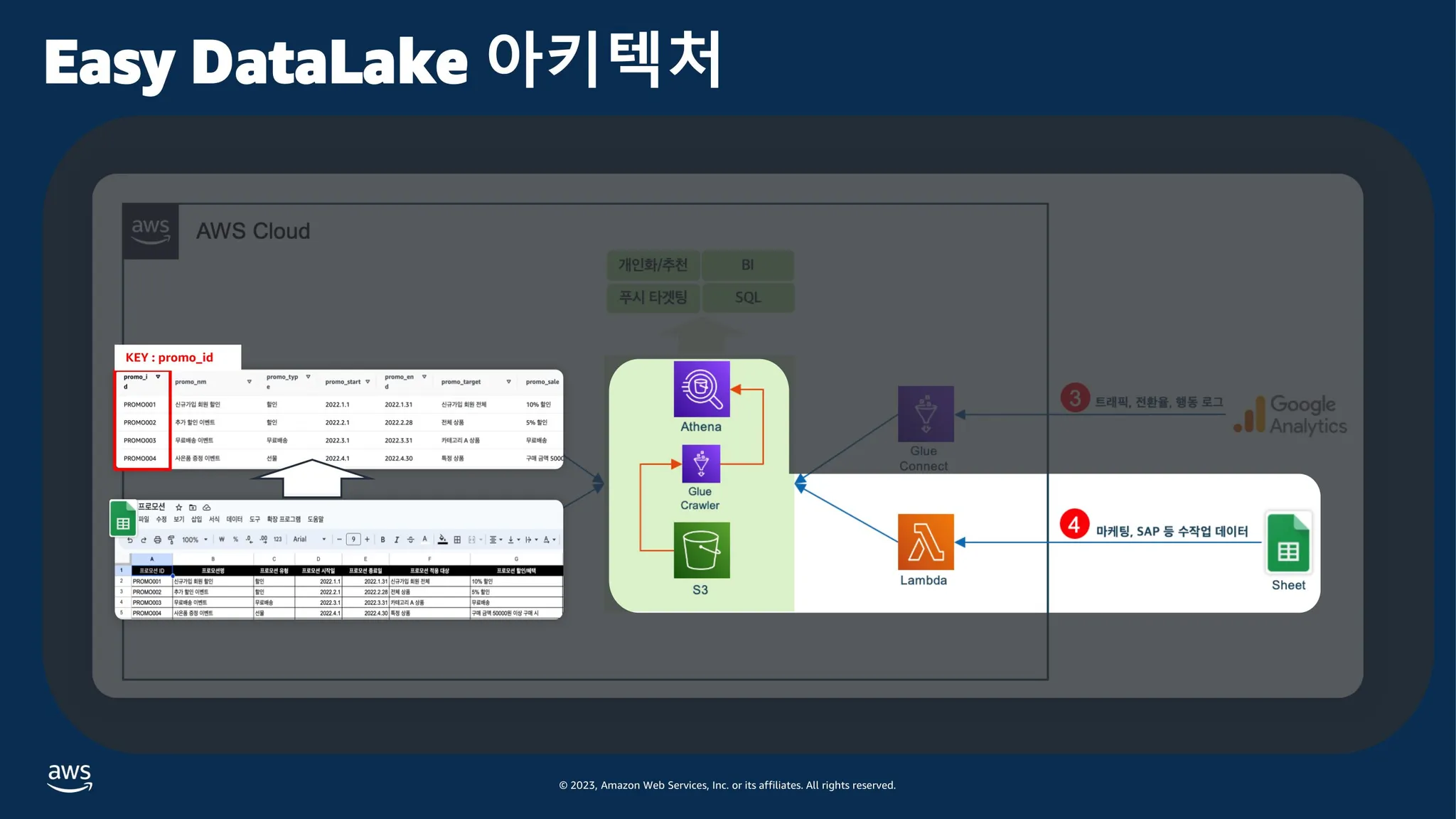 Athena, QuickSight, Personalization에서 Data Source로 사용 가능.