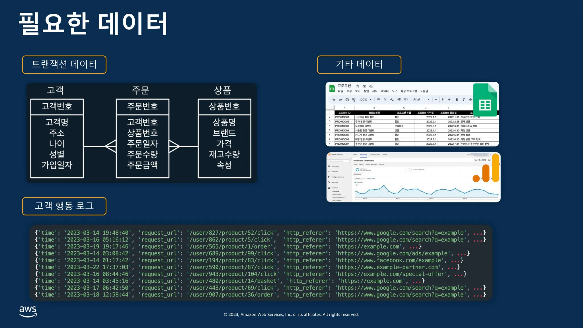 웹서버나 모바일 앱 등에서 수행되는 모든 고객 행동 로그