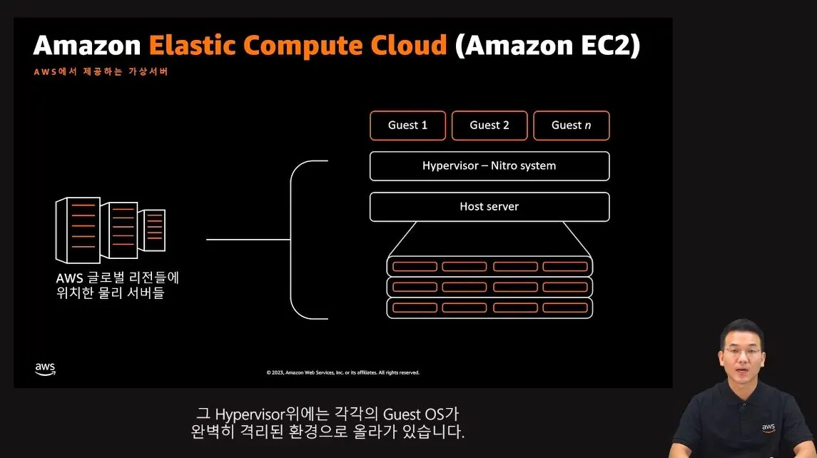 물리서버 위에는 AWS에서 직접개발한 Nitro System이라는 Hypervisor가 올라가 있다.