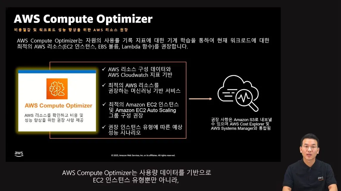 사용량 데이터를 기반으로 EC2 인스턴스 유형뿐만 아니라, EBS 볼륨 및 Lambda함수 등의 AWS리소스에 대해, 과다/과소 프로비저닝을 방지하는데 도움을 주는 AWS 서비스
