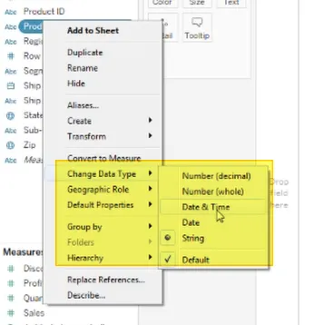 Change default properties for a data field (number format, aggregation, color, date format, etc.)