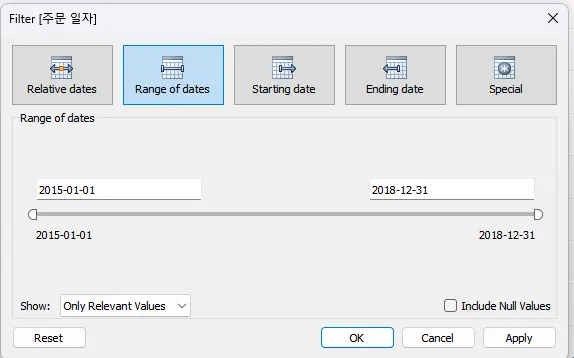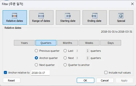 기준 날짜를 정해서 좀 더 다양하고 세부적으로 살펴볼 수 있는 필터..
