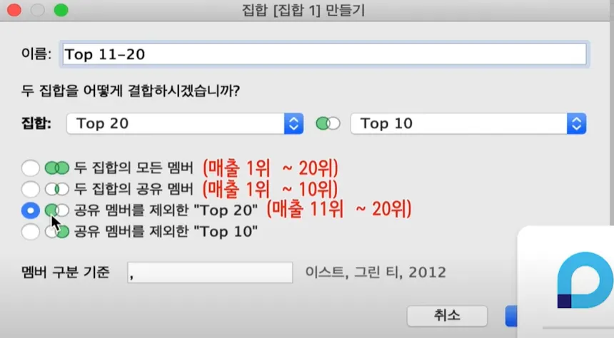 Create sets by using marks and the data pane(마크와 데이터 패널을 이용한 집합 만들기)