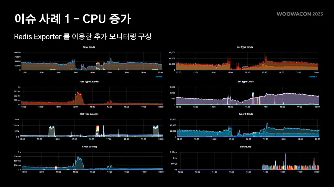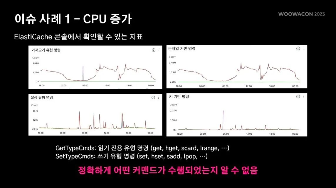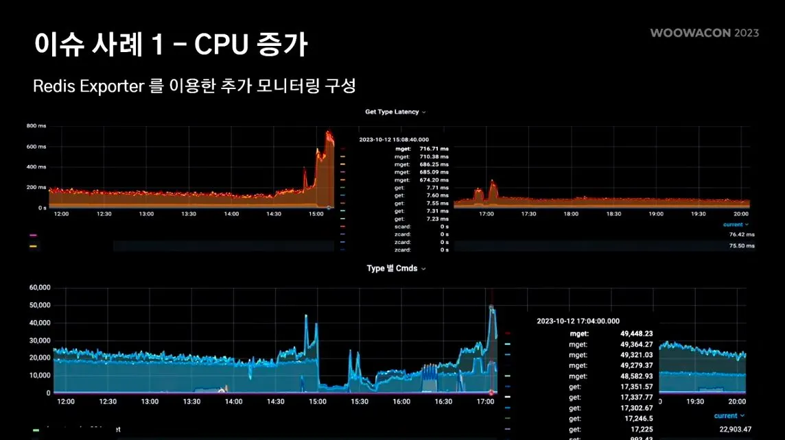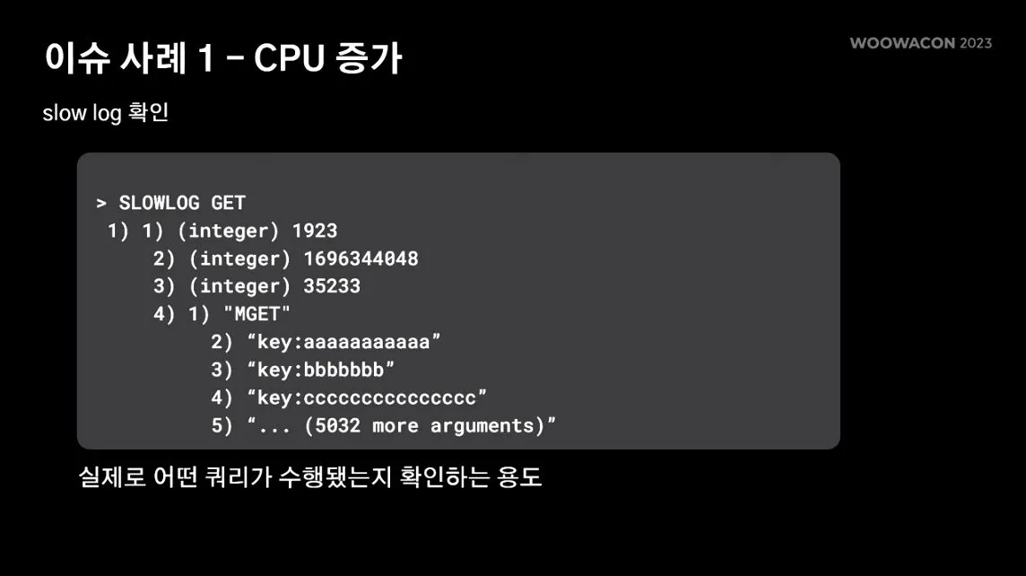 위 그래프를 통해 mget이란 커맨드가 시스템 이슈에 영향을 미치고 있는것 같다…