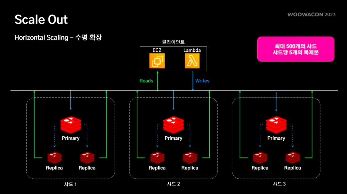 데이터가 여러 샤드에 나누어져서 저장. 샤드를 추가하는 것을 스케일 아웃이라고 함.
