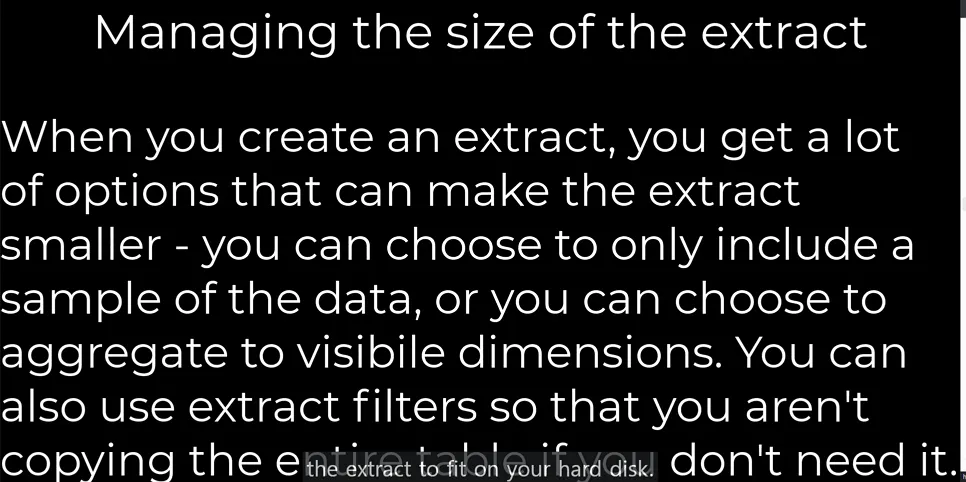 Which option is likely to reduce the time needed to create the extract, but unlike to reduce the extract size?